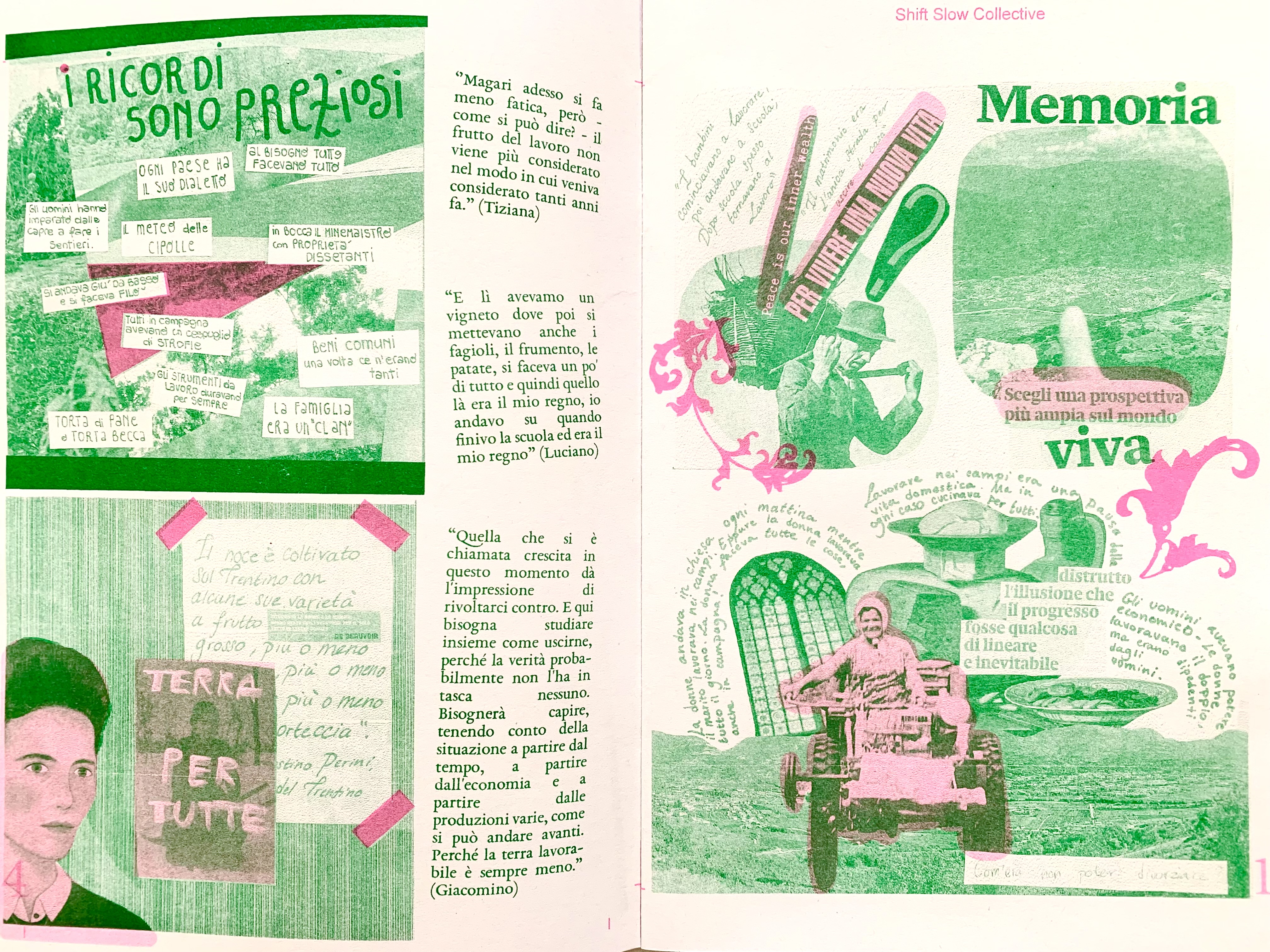 Over the past seventy years, the valley’s political-ecological landscape has undergone deep transformations: intensive monocultures of apples and grapes, the construction of large hydroelectric dams, and an accelerated consumption of land have reshaped the territory, erasing part of its identity. The project explored the dialogue between three temporal dimensions – past, present, and future – by documenting fading ecological knowledge, reframing it in the present, and co-creating future imaginaries rooted in a shared heritage. The activities were designed not to produce definitive answers, but to create the conditions for visions to emerge – connecting stories and desires, biographies and landscapes, material practices and speculative thinking. Informal moments, such as cooking and eating together, exchanging recipes, or sharing spontaneous stories, became equally important spaces for memory activation and community bonding. As a final outcome, we produced a zine publication functioning as a small affective and graphic archive of the process. Rather than a linear document, it offers a mosaic of images, words, and gestures, serving both as a record and as inspiration for similar initiatives elsewhere.