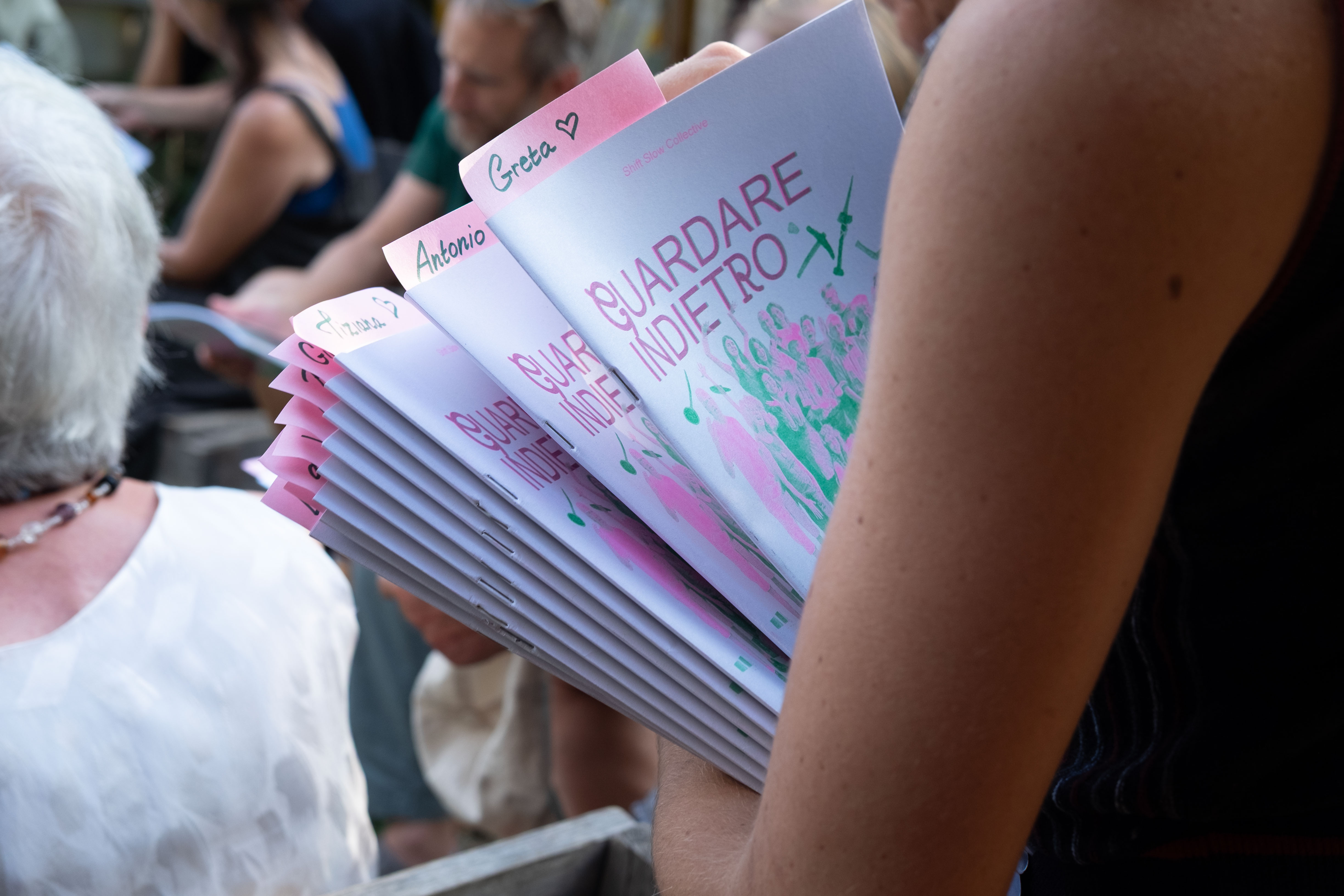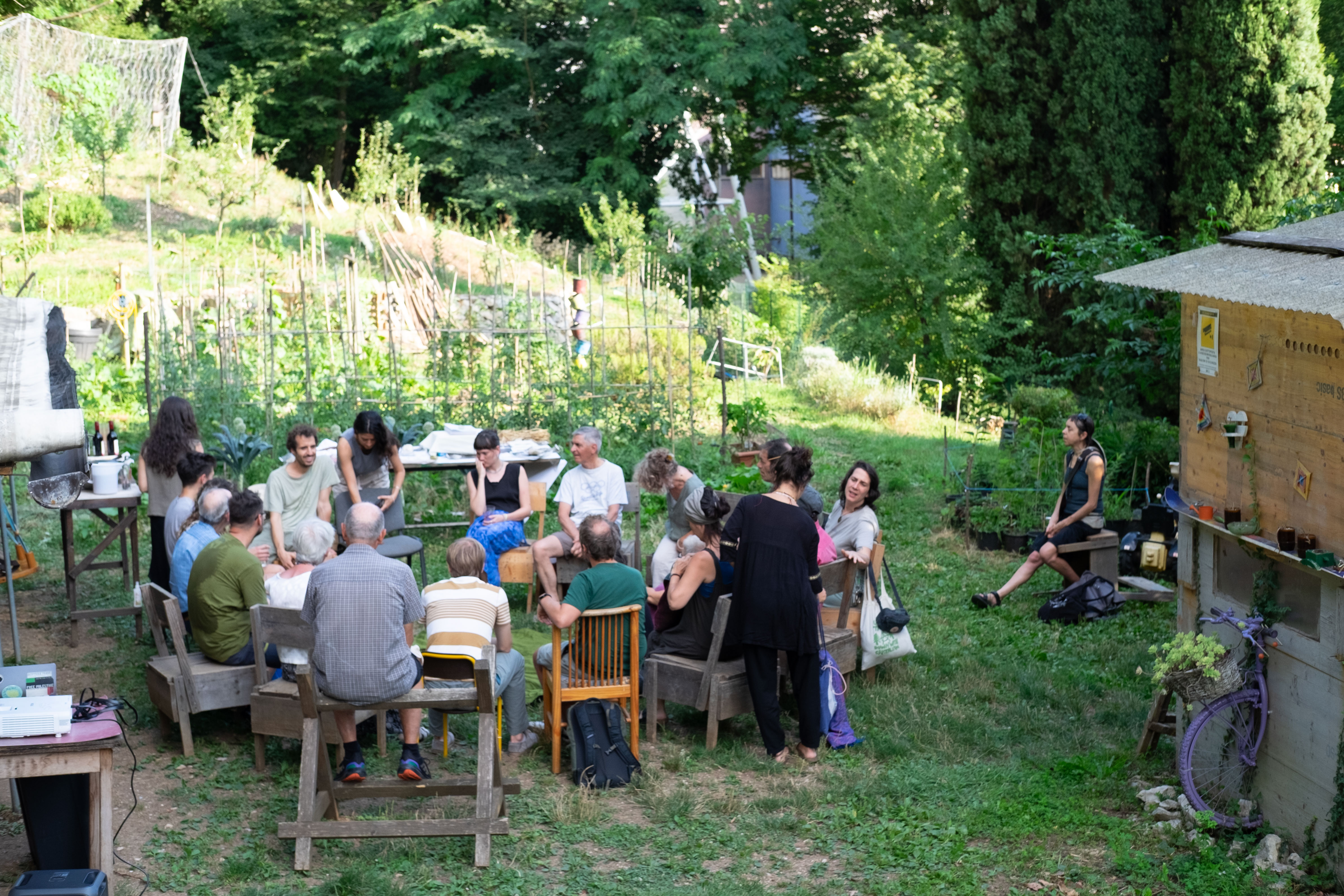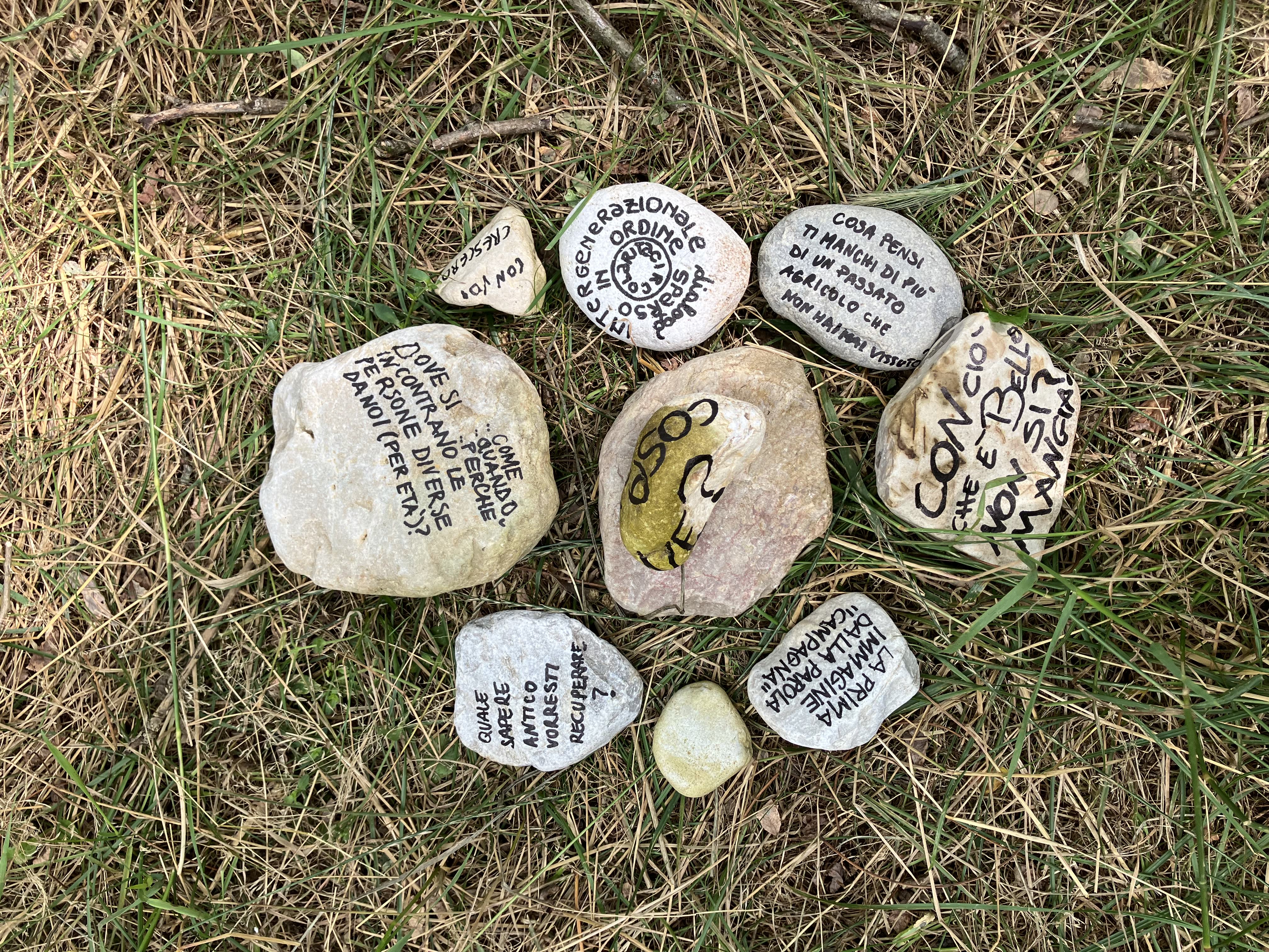Looking back to the future is an transdisciplinary, intergenerational art project carried out during the residency of the ShiftSlow collective at the community hub La Foresta, in Rovereto (Northern Italy). The project brought together ten elders from the Vallagarina Valley, holders of agroecological knowledge and life experience rooted in the local fields and landscapes, and ten young participants interested in reimagining sustainable futures for the area’s rurality. The central question guiding the project was: