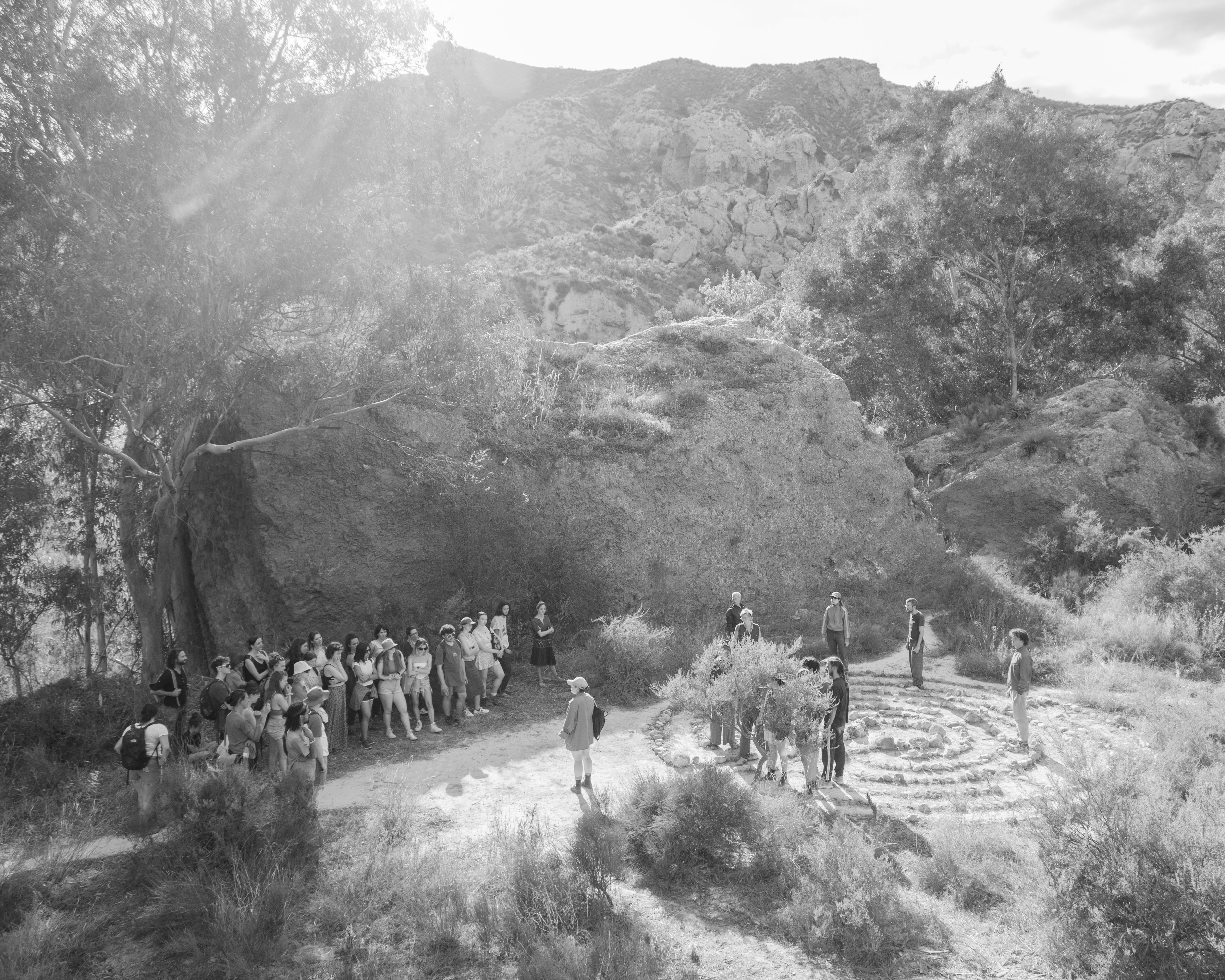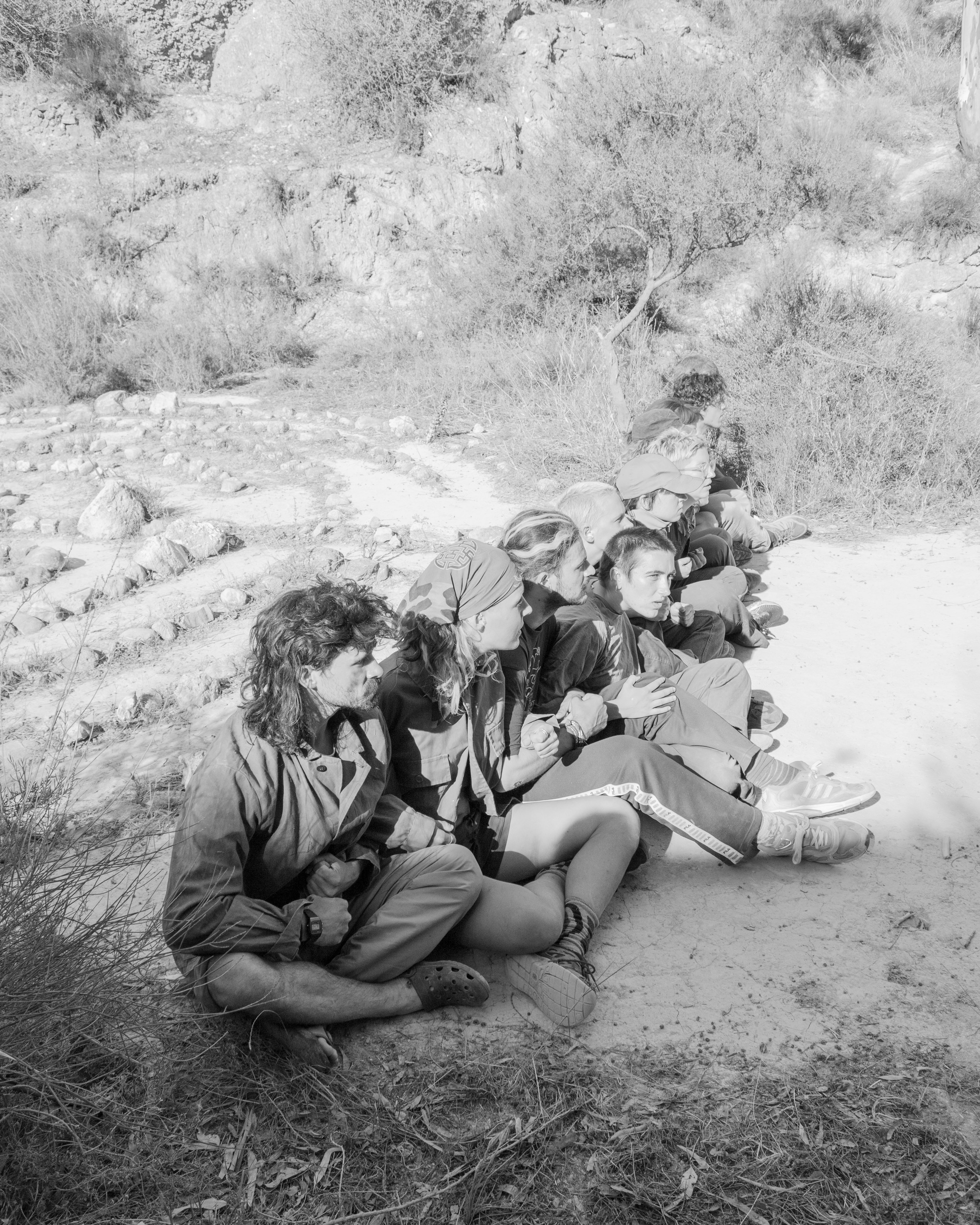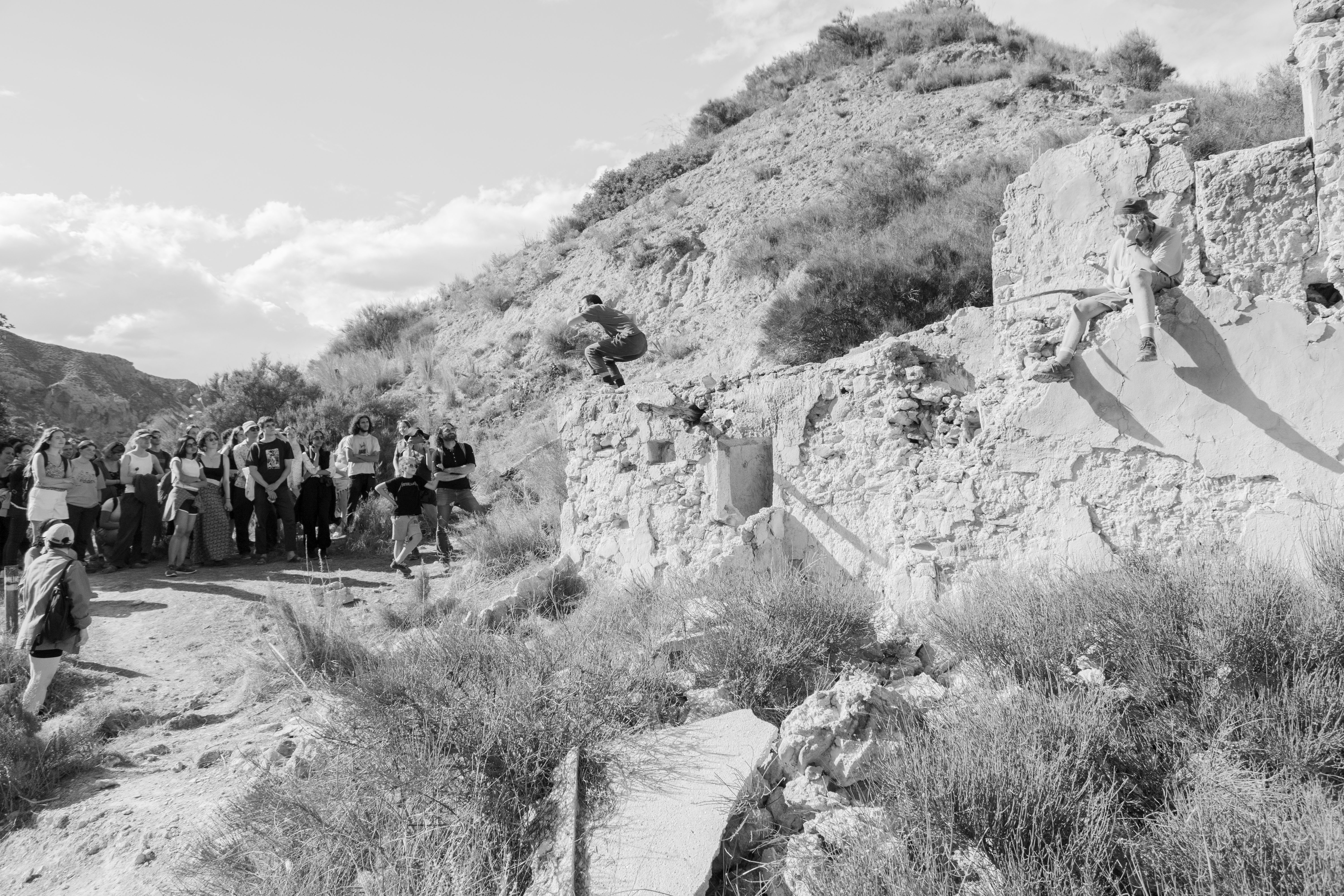 Las Memorias del Río Aguas is a site-specific, hiking-based performance I conceived and facilitated with a group of 10 young environmental activists during a 10-day residency in Los Molinos del Río Aguas, the only natural oasis in the province of Almería. The work was created in collaboration with members of Sunseed Desert Technology, an off-grid community committed to sustainable living in one of Europe’s most water-stressed regions. Supported by the EU-funded program Teens4Green and the Germinar-t degrowth arts residency, the project brought together memory practices, collective performance-making, and lived engagement with place. Participants reflected on their positionality as temporary guests in a fragile territory, and on the complexities between water, justice, and ecological collapse. The performance created a poetic and physical search for a drop of water that moves uphill, a symbol of resistance and resilience. Performed during the Festival del Agua, the piece invited local residents, activists, and visitors to join a shared journey through the desert, culminating in a collective ritual of grief and care.