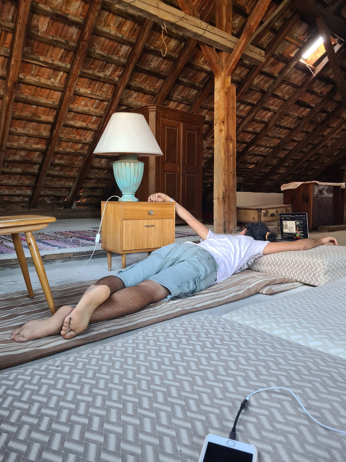 The installation is part of an artistic research about imagination. The audio you will listen to have been recorded during the residency, inside the space of GRUND, after an individual interview each person had with the artist. The people you will listen to are part of the people who inhabited the space of GRUND for the duration of the residency. The recordings springs from an activity which required the participant to engage in an active use of imagination. Through interacting with a phisycal medium, in this case the body of the artist, the dreamers have stimulated in different ways an internal production of images. Each one resulted in a unique language due to the different patterns in the working of our imagination. Different categories of imagination emerged: spatial imagination, memories, abstract imagination and cultural imagination. The research is aimed at stimulating a reflection over the lost knowledge of imagination, over our ability to clasp things with our inner claws. In this times of crisis, to image new futures we need to be in contact with what Colin Wilson defined as “the ability to grasp realities that are not immediately present” : imagination.